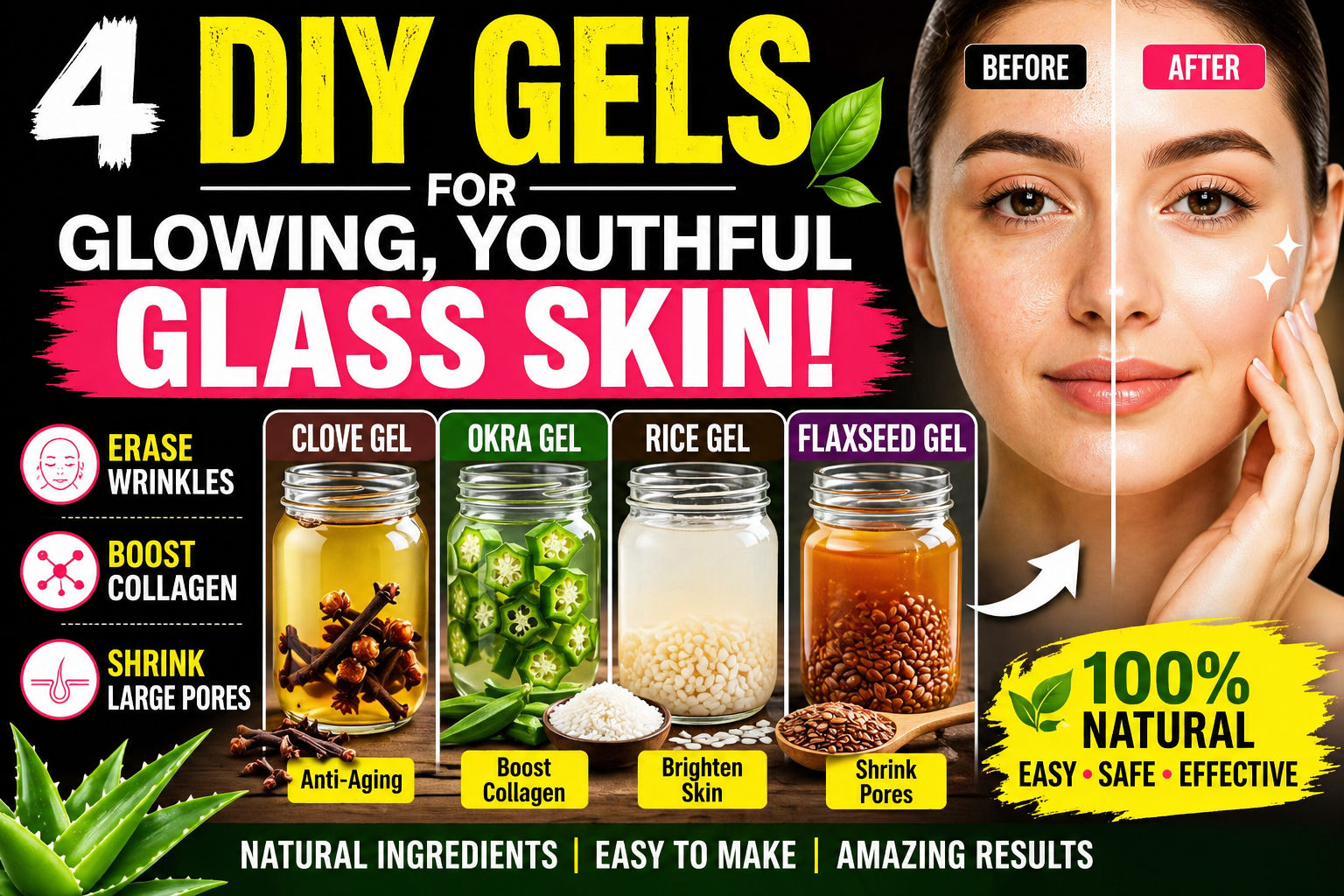 Dreaming of smooth, glowing, and youthful skin without expensive products? The secret might already be in your kitchen! These 4 powerful homemade skin gels are simple, natural, and packed with skin-loving nutrients.