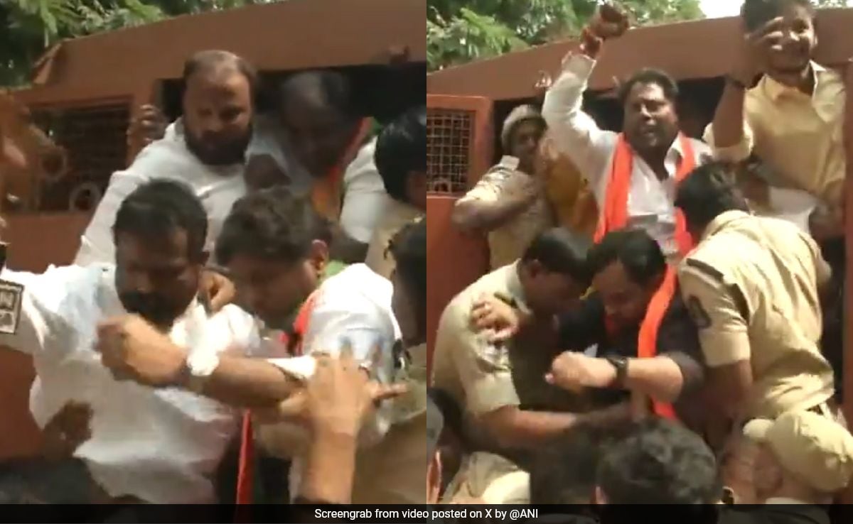 Videos showed the police detaining BJP MLAs outside their state headquarters to prevent them from proceeding towards the university.
