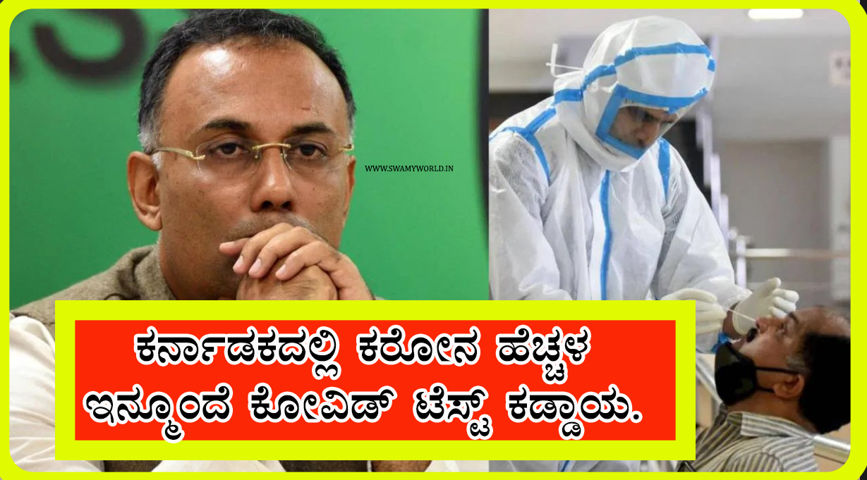 ಕರ್ನಾಟಕದಲ್ಲಿ ಕೋವಿಡ್-19 ಪ್ರಕರಣಗಳ ಸಂಖ್ಯೆ ಹೆಚ್ಚುತ್ತಿರುವ ಹಿನ್ನೆಲೆ, ಉಸಿರಾಟ ಹಾಗೂ ಹೃದಯ ಸಂಬಂಧಿತ ಸಮಸ್ಯೆ ಹೊಂದಿರುವವರಿಗೆ ಕಡ್ಡಾಯವಾಗಿ ಕೋವಿಡ್ ಪರೀಕ್ಷೆ ನಡೆಸುವಂತೆ ಆರೋಗ್ಯ ಸಚಿವ ದಿನೇಶ್ ಗುಂಡೂರಾವ್ ಸೂಚಿಸಿದ್ದಾರೆ.