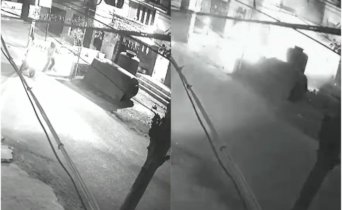 A powerful explosion took place at a temple in Amritsar late Friday night, shattering window panes and damaging the structure’s walls. CCTV footage captured two unidentified individuals arriving on a motorcycle at the Thakur Dwara Temple in the Khandwala area, stopping briefly, and then throwing an explosive towards the temple before fleeing.