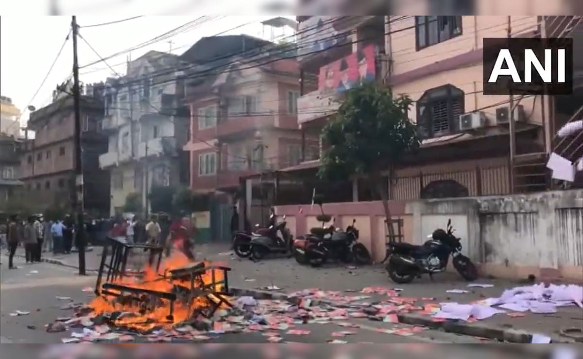 #WATCH | Nepal: A clash broke out between pro-monarchists and Police in Kathmandu near the airport. Several rounds of tear gas and rubber bullets fired by the Police. Vehicles and a house torched. Curfew ordered in Tinkune, Sinamangal and Koteshwor area.