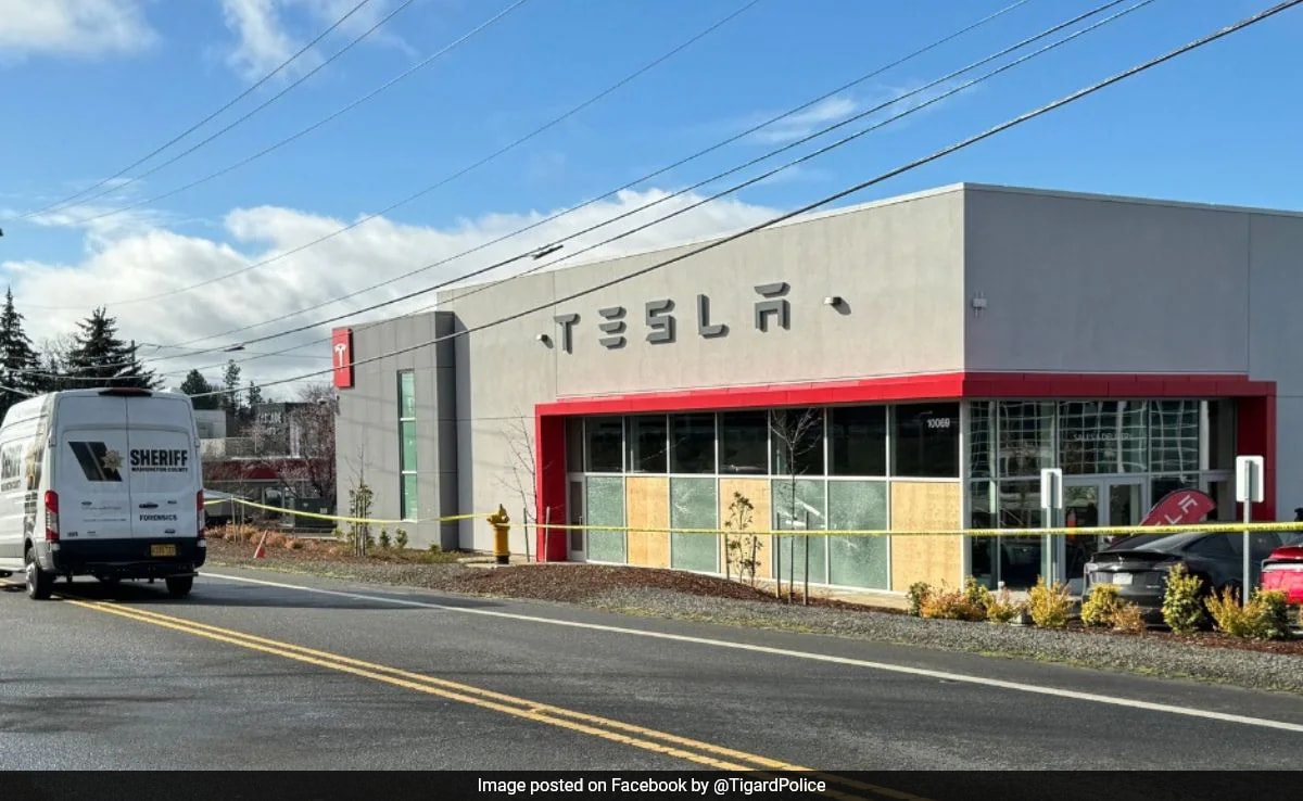 Around 4:15 a.m., more than a dozen shots were fired around the electric vehicle dealership in the Portland suburb of Tigard, according to the Tigard Police Department. The shooting caused extensive damage to cars and showroom windows, police said. No one was hurt.
