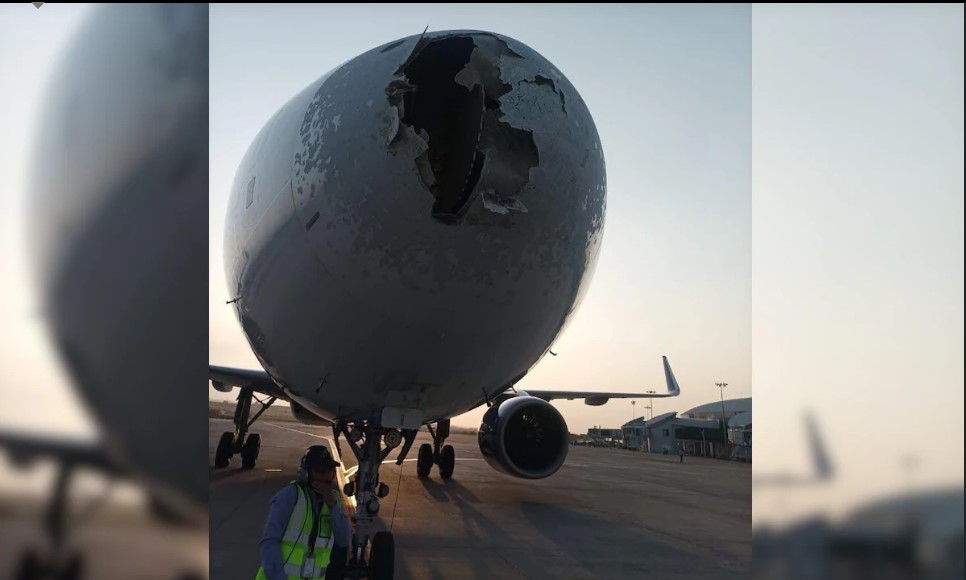 While the airline did not officially detail the extent of the damage, viral images circulating on social media revealed a cracked and broken portion of the aircraft’s radome (nose cone), caused by the high-impact hail. The aircraft has since been grounded for mandatory inspection and maintenance.