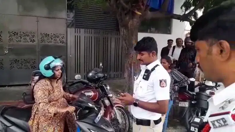 ಮಾಗಡಿ ರಸ್ತೆ ಸಂಚಾರಿ ಠಾಣೆ ಹತ್ತಿರ ಮಹಿಳೆ ತನ್ನ ಸ್ನೇಹಿತೆಯೊಂದಿಗೆ ಸ್ಕೂಟರ್ನಲ್ಲಿ ಸಾಗುತ್ತಿದ್ದರು. ಮುಂದೆ ಕುಳಿತಿದ್ದ ಮಹಿಳೆ ಹೆಲ್ಮೆಟ್ ಹಾಕಿದ್ದರೂ, ಹಿಂದೆ ಕುಳಿತಿದ್ದ ಸ್ನೇಹಿತೆ ಹೆಲ್ಮೆಟ್ ಹಾಕಿರಲಿಲ್ಲ. ಇದೇ ಸಂದರ್ಭದಲ್ಲಿ ಟ್ರಾಫಿಕ್ ಪೊಲೀಸರು ವಾಹನವನ್ನು ತಡೆದು, ನಿಯಮ ಉಲ್ಲಂಘನೆ ಬಗ್ಗೆ ಪ್ರಶ್ನಿಸಿದರು.